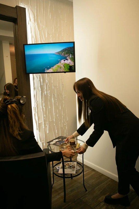 Также к услугам наших посетителей антицеллюлитный массаж, массаж головы и лица, фотоэпиляция, окрашивание волос, детский парикмахер, косметология, в том числе аппаратная, пилинг, обертывания, контурная пластика, биоревитализация, мезотерапия, инъекции ботокса, макияж, коррекция формы бровей, окрашивание ресниц, наращивание, укладка и маски для волос, вечерние и свадебные прически, свадебный макияж, мужские стрижки, стрижка бороды и усов, спа-уход для ногтей.